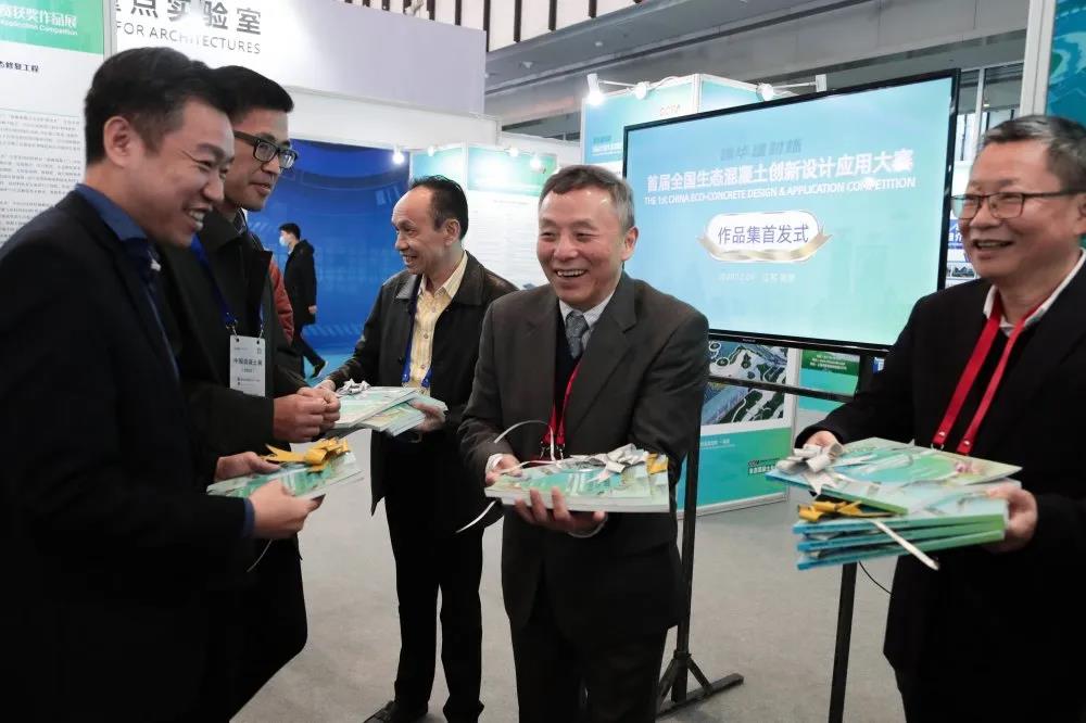 12月4日,中國混凝土與水泥制品協會執(zhí)行會長徐永模先生、CCPA生態(tài)混凝土分會理事長、建華建材(中國)有限公司執(zhí)行總裁張雁先生出席《首屆全國生態(tài)混凝土創(chuàng)新設計應用大賽獲獎作品集》首發(fā)式。首發(fā)式現場獲獎作品通過展板、圖片、視頻、樣品等方式展示大賽獲獎項目及創(chuàng)意成果,吸引了無數參觀者的目光。