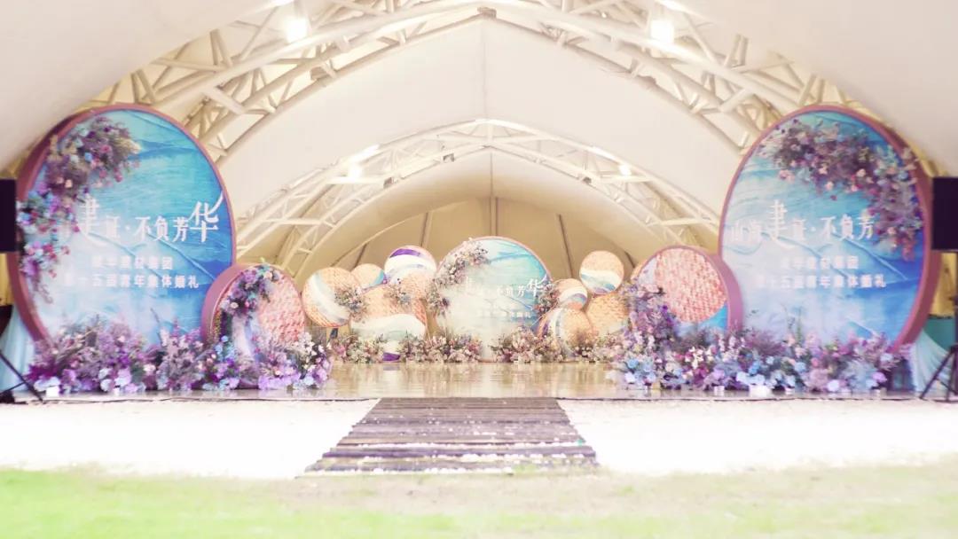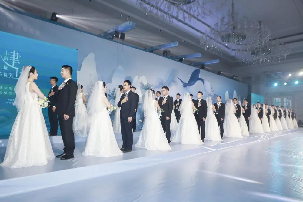 本屆青年集體婚禮主題為“山?!āC,不負芳‘華’”,唯美又浪漫的海洋婚禮儀式,傳承了山海與共的堅貞與深情。