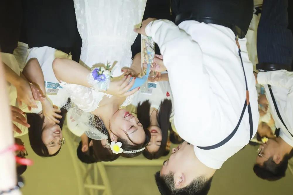 隨后,新人們相對而立,將右手深情放在心臟位置,彼此鄭重許下相守一生的承諾。鏗鏘有力的誓言,是建華青年對責任擔當、愛情執(zhí)著的表達。帶上愛的指環(huán)的雙手,緊緊相扣,高高舉起,邀請全場嘉賓共同見證他們的幸福。