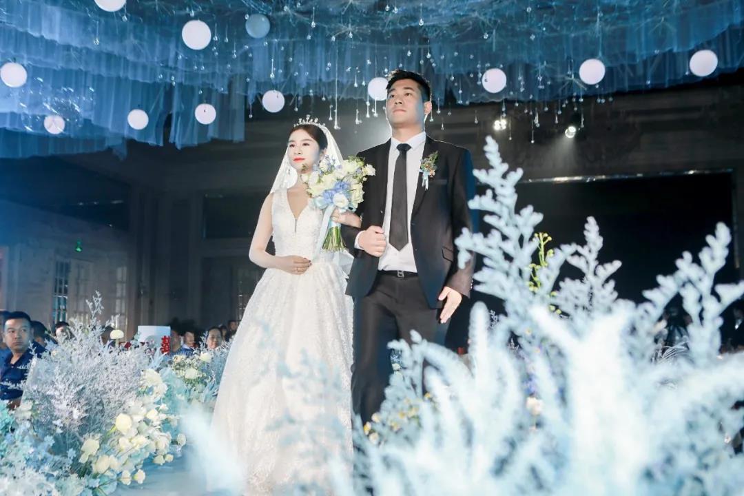 與白天溫馨浪漫的求婚儀式不同,晚上的主婚禮儀式則更加唯美、隆重。