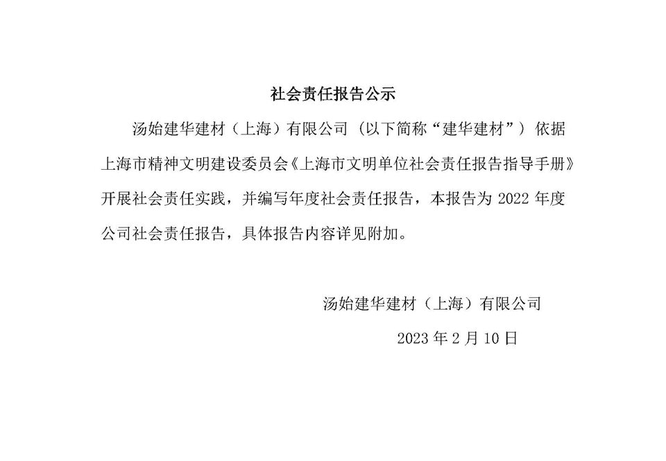 湯始建華建材(上海)有限公司社會責(zé)任報(bào)告(2023年度)見附件