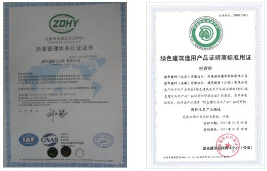 2015年通過(guò)國(guó)家建筑材料測(cè)試中心認(rèn)證為“綠色建筑選用產(chǎn)品”。